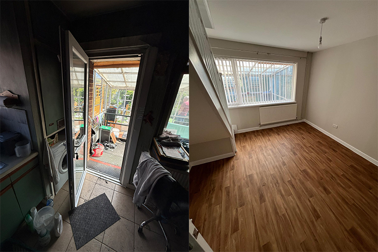 - Works Following extensive fire and smoke damage, the property required a full strip-out back to shell condition prior to reinstatement. A comprehensive restoration to return the property to a fully habitable condition, incorporating fully refreshed services and high-quality finishes throughout. Works Undertaken Specialist clean throughout Full property strip-out to shell Complete electrical rewire Boiler replacement Full radiator replacement & heating repairs Carpentry repairs including staircase Replacement of all plumbing installations Installation of new kitchen, bathroom, and ensuite Replacement windows throughout Renewal of all internal doors, architraves, and associated joinery Full replastering Final decoration to all areas Project successfully delivered within the agreed programme and budget, demonstrating effective project management and cost control throughout. The quality of workmanship and adherence to client requirements resulted in us receiving the highest possible customer satisfaction score